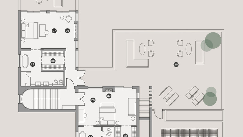 This exquisite six‑bedroom villa blends airy, light‑filled interiors with generous outdoor living, creating a serene private retreat where everyday life feels like a perpetual holiday. Open‑plan lounge, dining, and kitchen spaces flow to deep shaded terraces, a firepit lounge, and a glistening 78 m² pool set within landscaped gardens for effortless alfresco gatherings with family and friends. Elevated first‑floor suites enjoy large private terraces framing cinematic views over lakes, forest, and verdant fairways, balancing privacy with indoor–outdoor elegance.